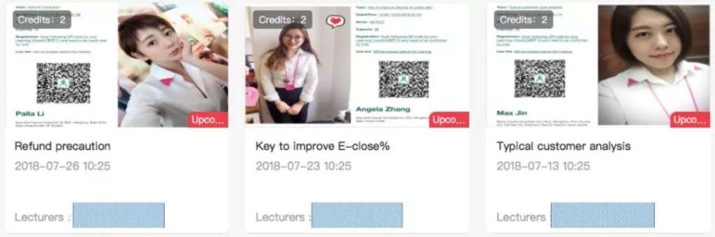 ■直播分享会内容围绕销售、服务团队,不定期邀请讲师、员工进行自定主题经验分享。
